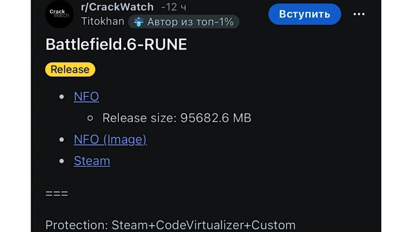 Обложка: Battlefield 6Спустя несколько месяцев после релиза пиратам удалось взломать Battlefield 6. Взлом осуществила группа Rune, о чем сообщили в сообществе Reddit CrackWatch.
